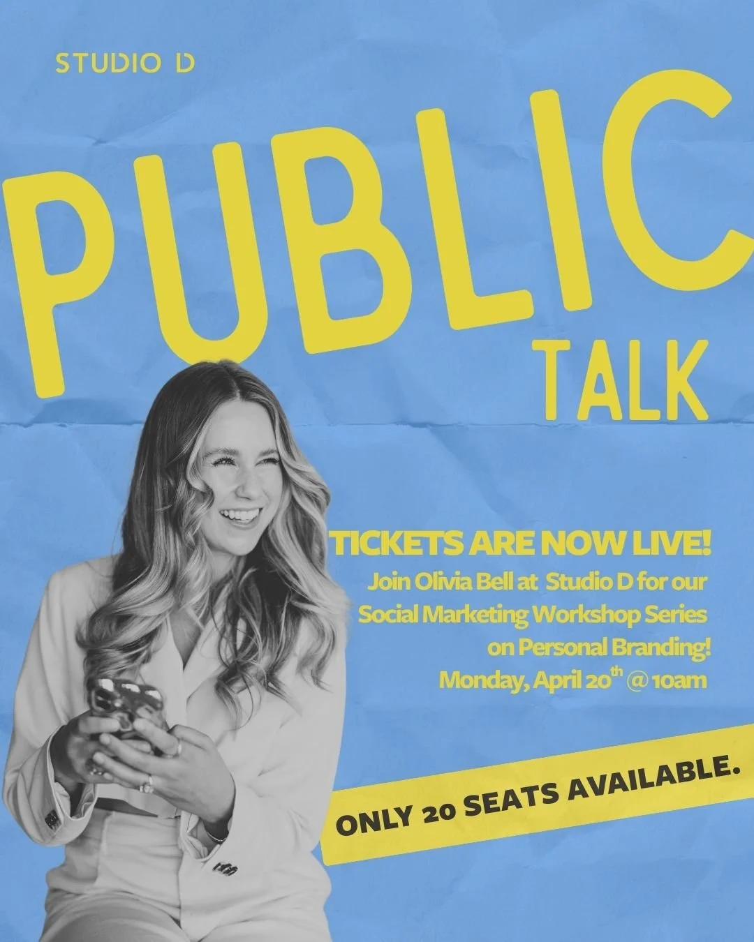 Join us at Studio D as Olivia Bell talks about leveraging your personal brand. After four years of building and refining her own approach, Olivia will break down a few practical ideas for showing up online in a way that feels authentic and effective.